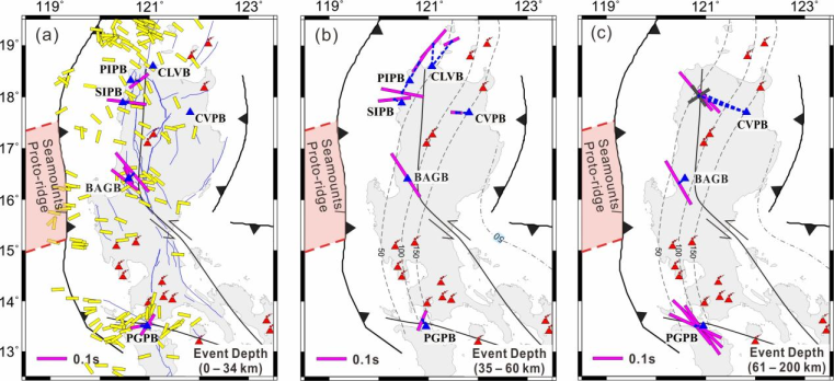 Cao, L., He, X., Zhao, L., Huang, B.‐S., Hao, T., Zhao, M., et al. (2025). Frequency‐dependent anisotropy and upper plate deformation due to seamount subduction in northern Luzon. Geophysical Research Letters, 52, e2025GL119325.
