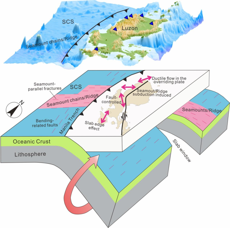 吕宋北部位于欧亚板块与菲律宾海板块汇聚边界,是典型的成熟俯冲带。多个大型海山沿马尼拉海沟俯冲,被认为可能显著调节区域应力场及地震活动,但其具体机制长期缺乏直接证据。