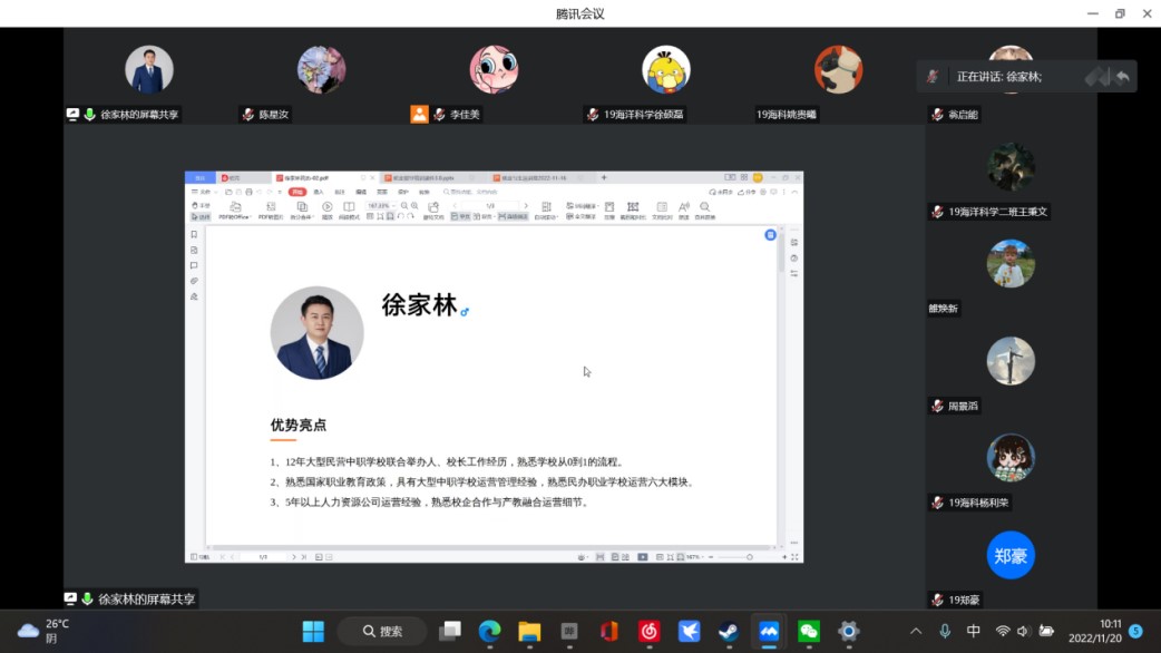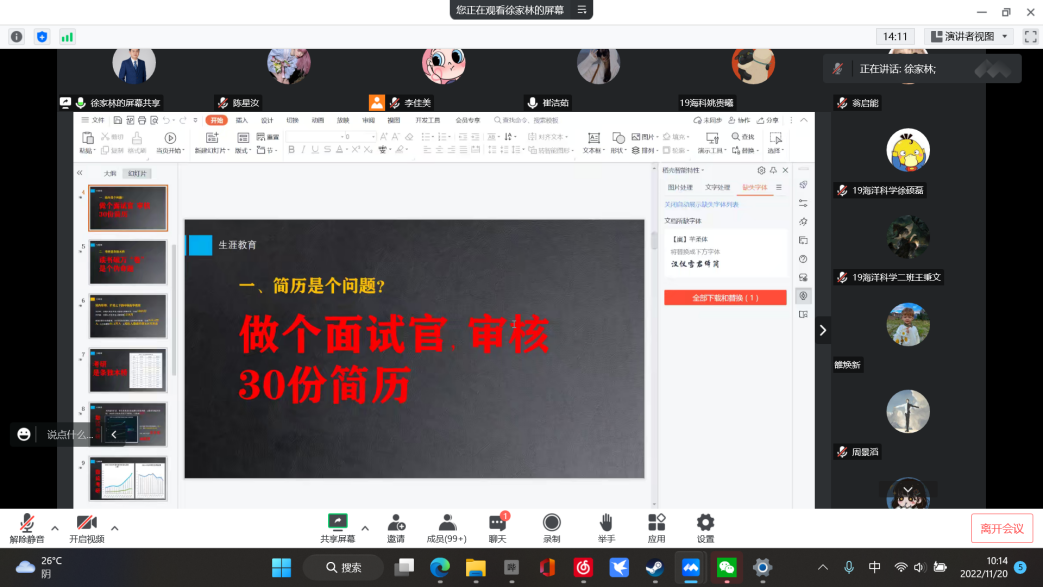 徐老师从多角度给同学们介绍了考研现状,提醒同学们只有努力才有收获,他还带领大家了解当前的就业环境,并帮助毕业生们进行职业生涯规划。讲座最后,徐家林老师与同学进行连麦,对提出的问题进行答疑解惑。